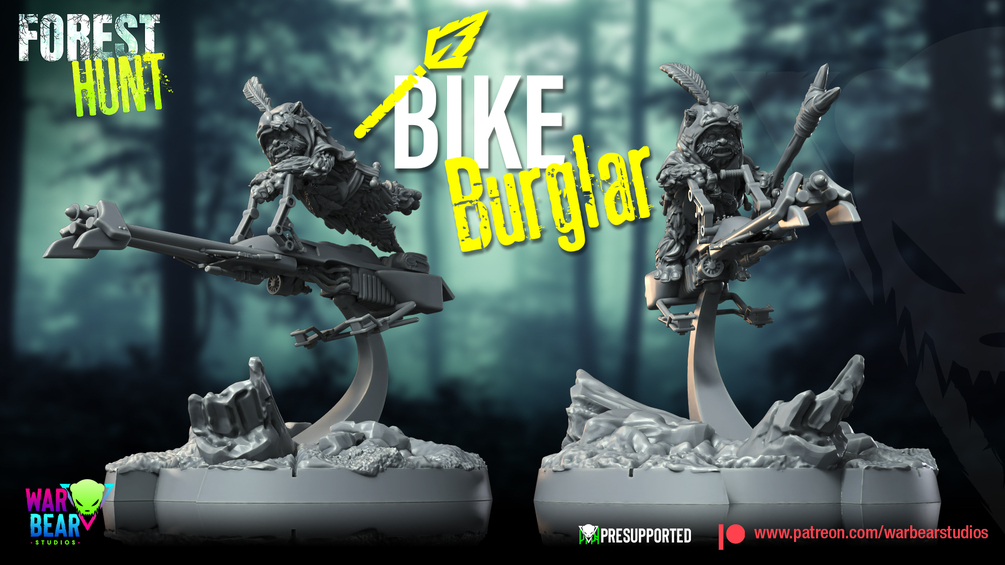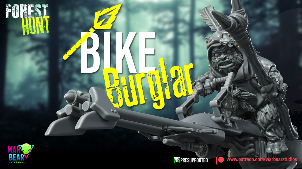 Reckless Teddy Bear riding a stolen bike from the Forest Hunt collection.