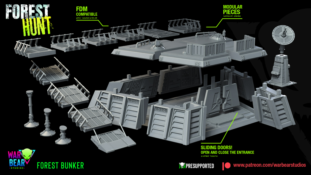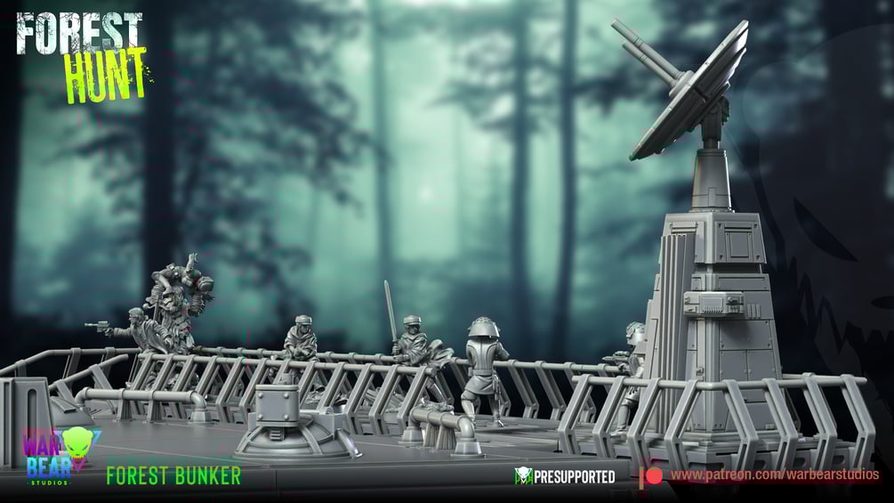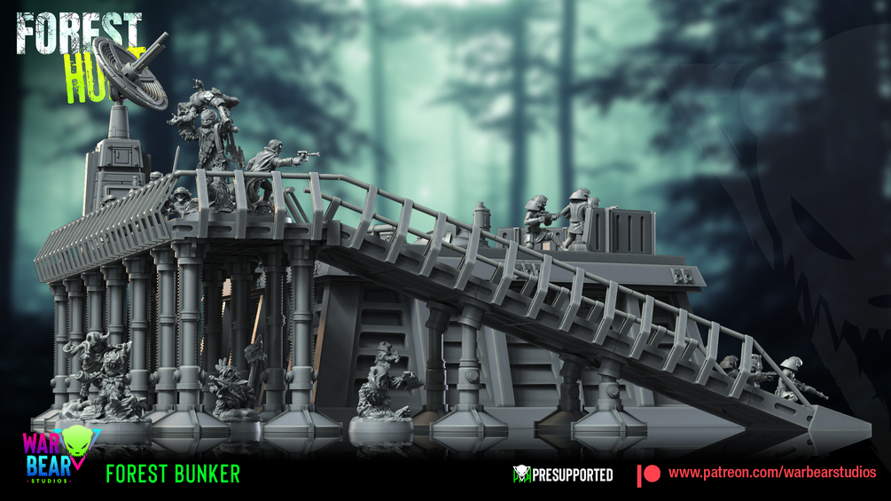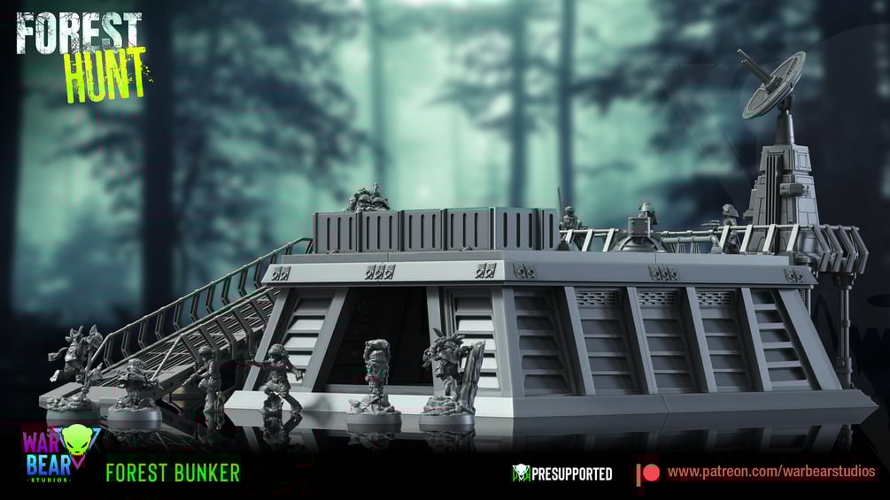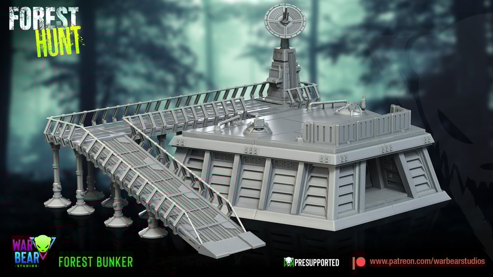 1x 35mm scaled highly detailed printable Forest Bunker scenery from the Forest Hunt collection.