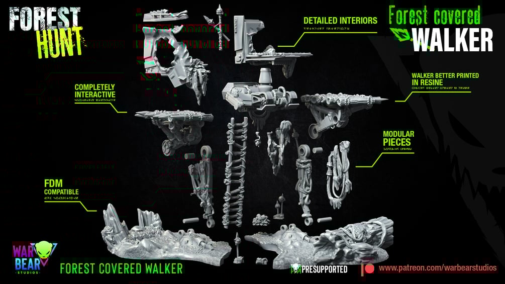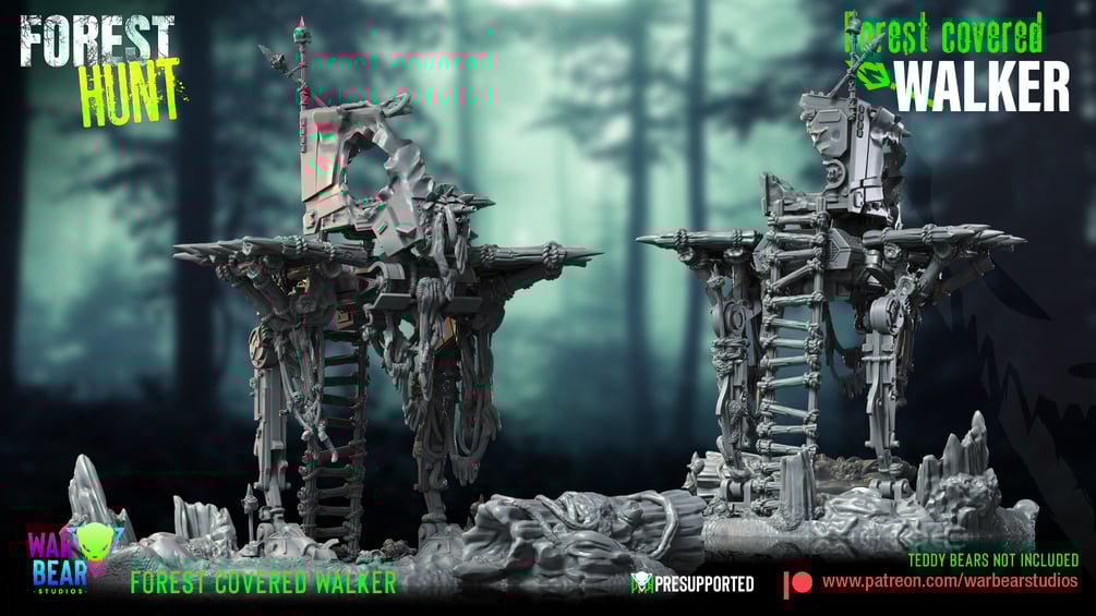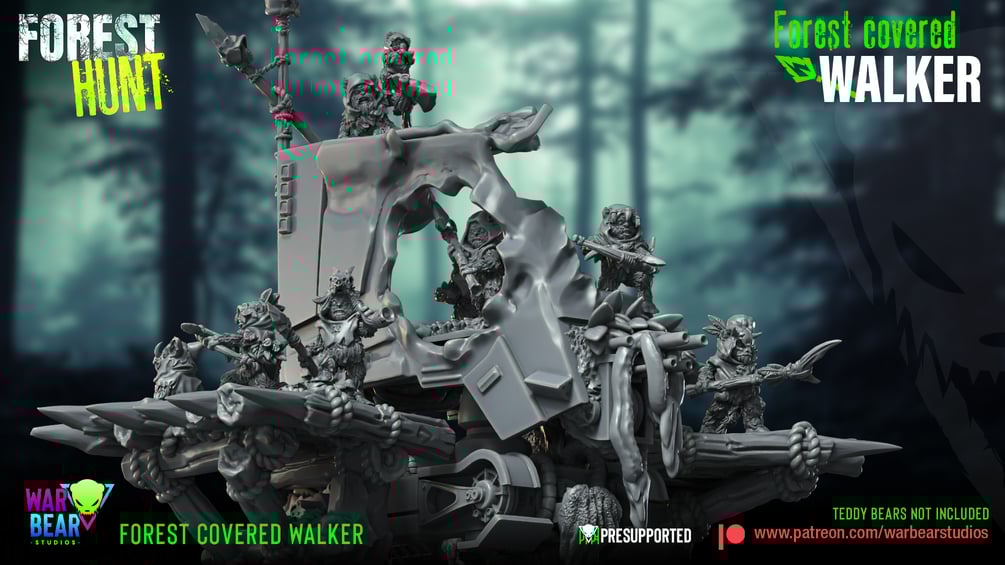 1x 35mm scaled highly detailed printable Forest Covered Walker scenery from the Forest Hunt collection.