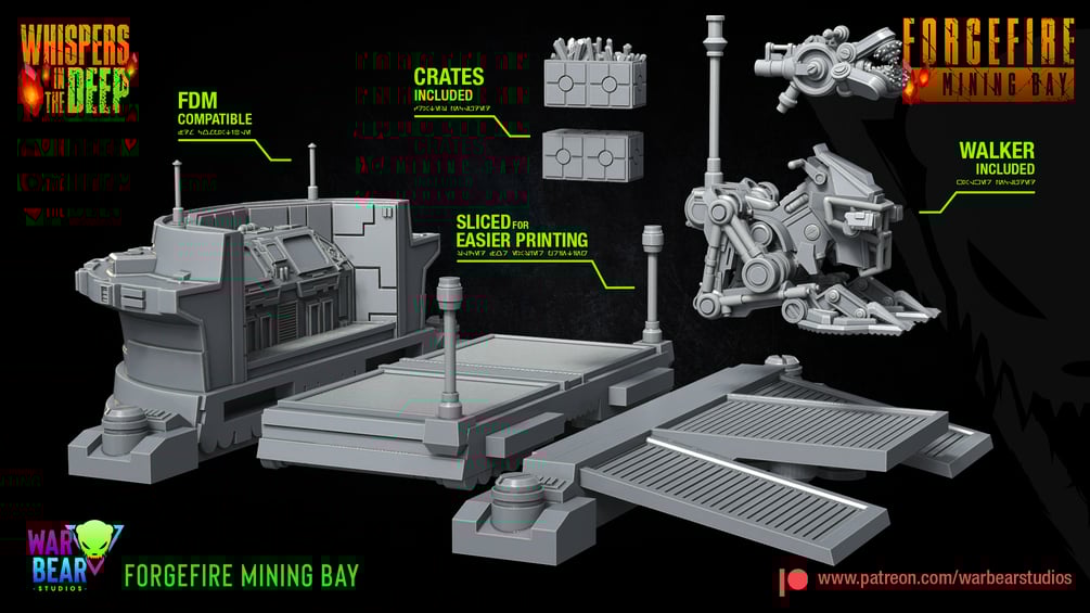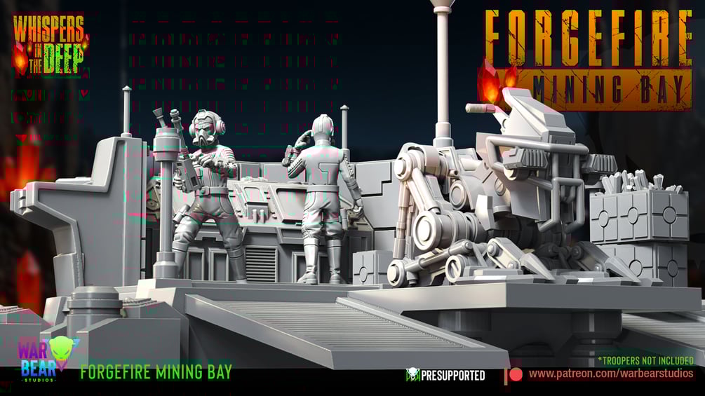 1x 35 mm sized, highly detailed Forgefire Mining Bay from the Whispers in the Deep collection.