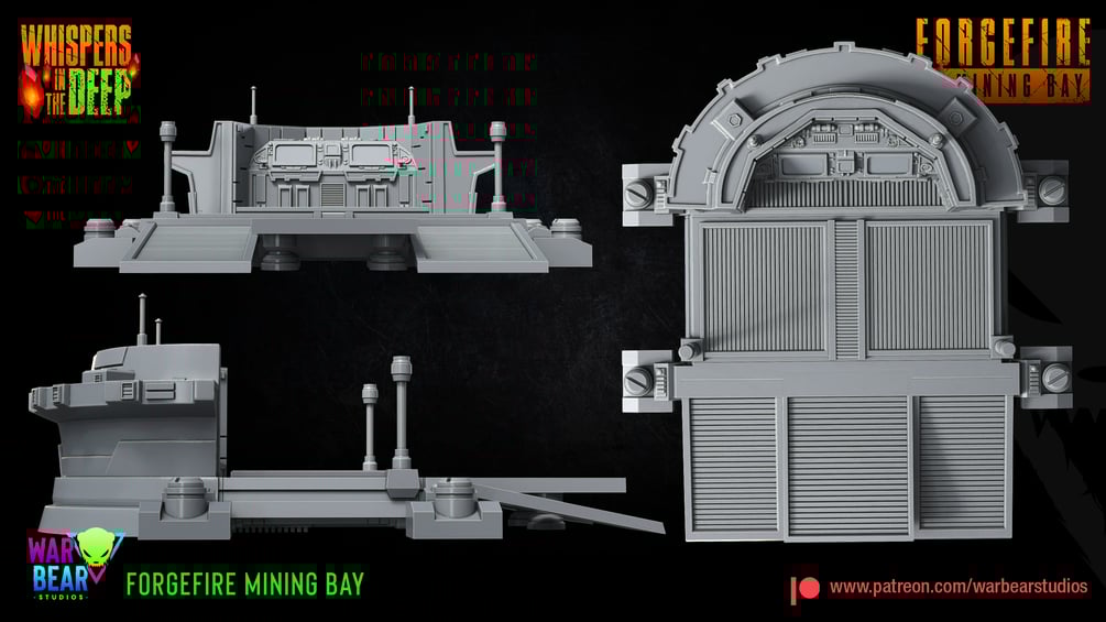 1x 35 mm sized, highly detailed Forgefire Mining Bay from the Whispers in the Deep collection.