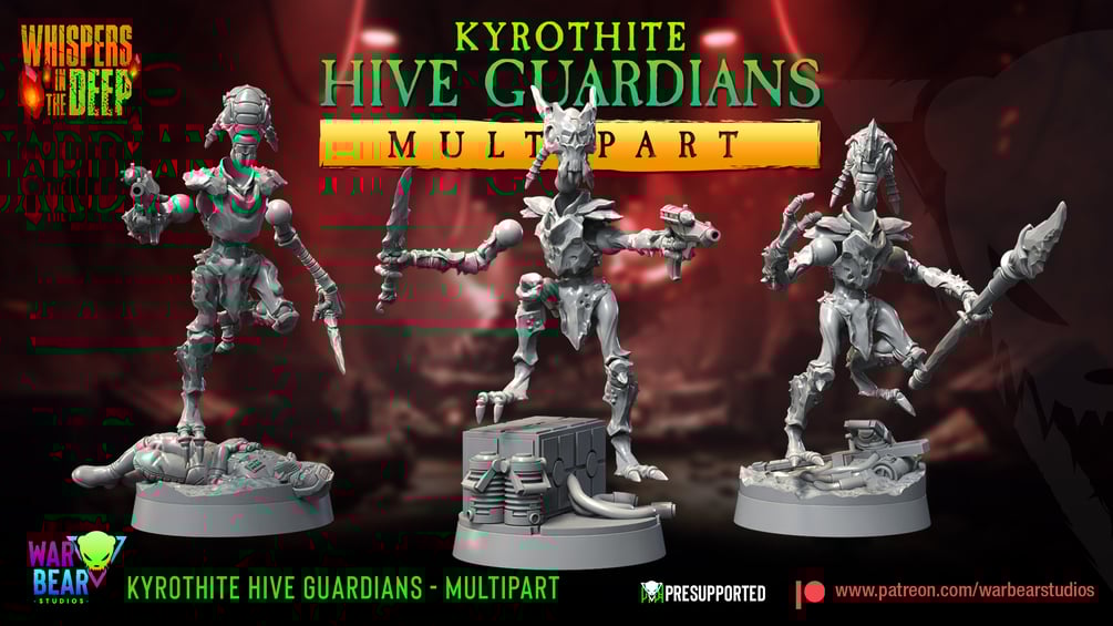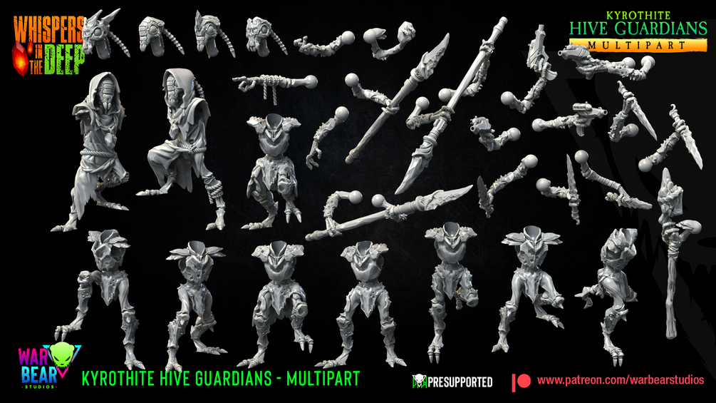 Modular Kyrothite Hive Guardians set from the Whispers in the Deep collection to create and customize 10+ 35mm printable highly detailed figures.