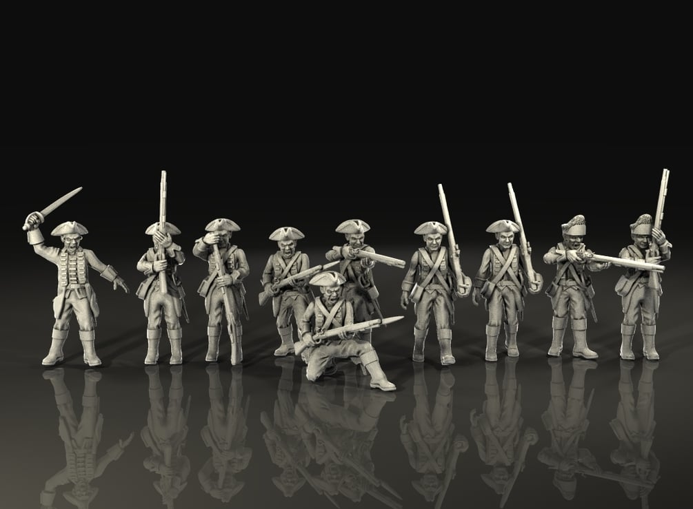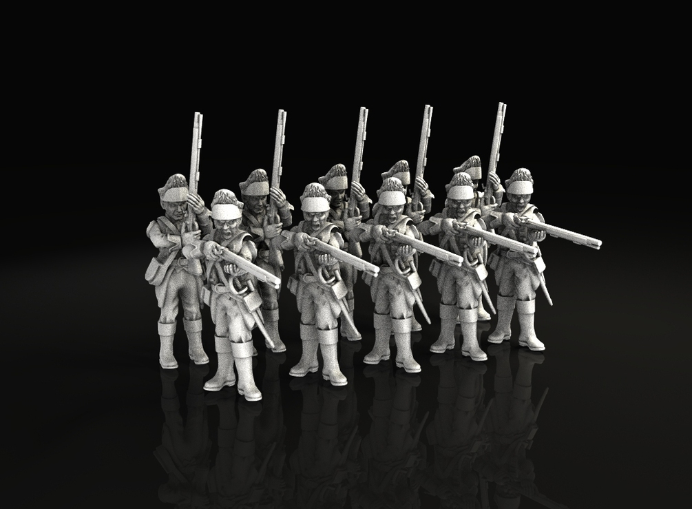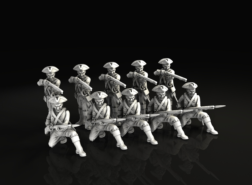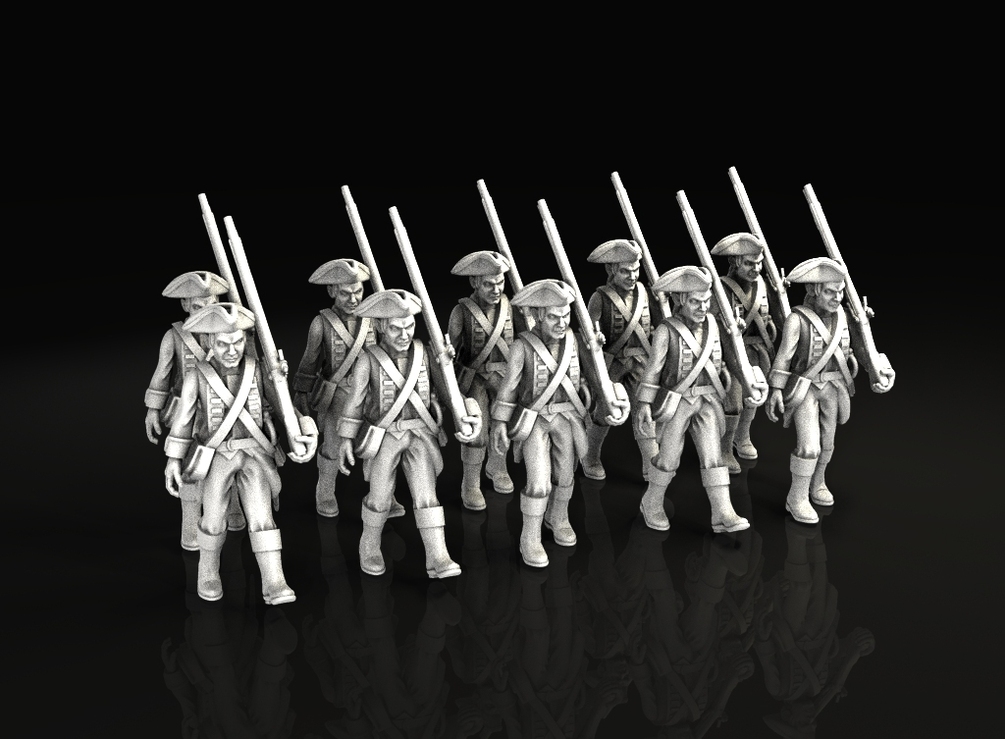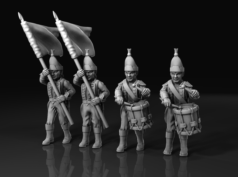 This kit allow you to print columns of 1750 british infantry, marching, aiming, charging. includes a commander, drumers and standard bearers